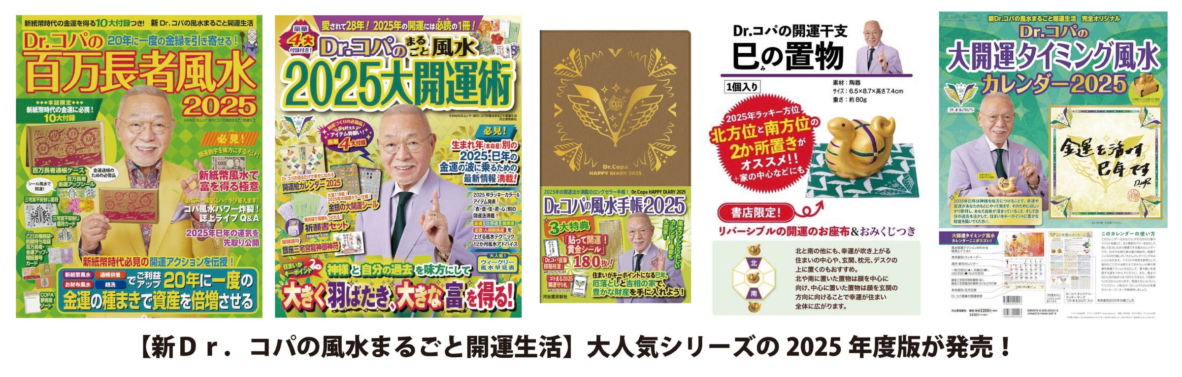 【新Dr.コパの風水まるごと開運生活】『Dr.コパの開運干支 巳の置物』『Dr.コパのまるごと風水2025大開運術』など大人気シリーズの2025年度版が発売!全国の書店で発売中。