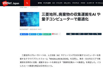 科学(pick up science)「三菱地所、廃棄物の収集運搬をAI や量子コンピューターで最適化」という三菱地所とグルーヴノーツによる取り組みについて取り上げている記事が、 ZDNet Japanに掲載されています。