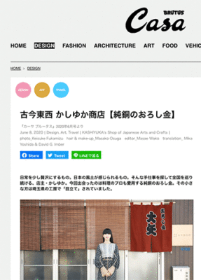 音楽(pick up music)「古今東西 かしゆか商店【純銅のおろし金】」という記事が、Casa BRUTUSに掲載されています。
