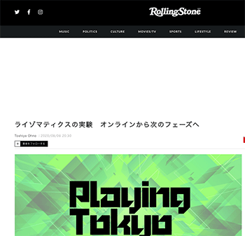 「ライゾマティクスの実験 オンラインから次のフェーズへ」という記事が、Rolling Stone Japanに掲載されています。