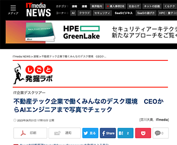 「不動産テック企業で働くみんなのデスク環境 CEOからAIエンジニアまで写真でチェック」という記事が、 ITmedia NEWSに掲載されています。
