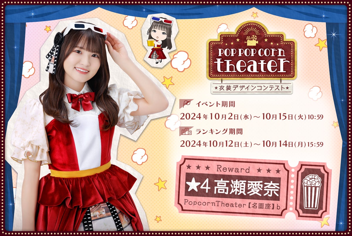 スマートフォンゲーム『日向坂46とふしぎな図書室』で、期間限定イベント「衣装デザインコンテスト~Pop pop corn theater~」が10月2日から開催されます。このイベントでは、プレイヤーがデザインした衣装がゲーム内で使用されるチャンスがあり、特別な報酬も用意されています。