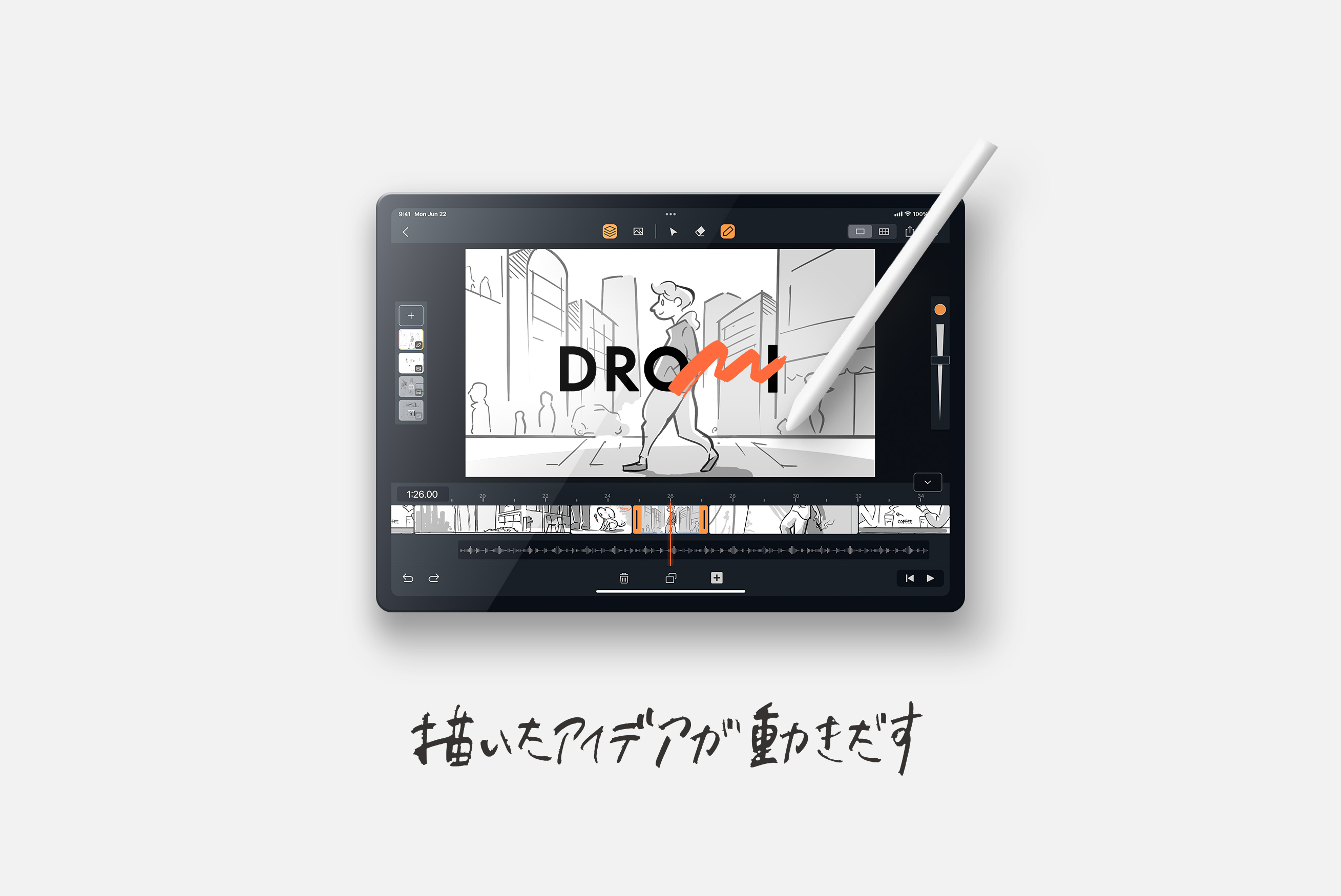 DROMIは動画編集に適したタイムライン形式の画面に、直接描きこむことができるiPad専用の絵コンテアプリです。軽やかなタッチで描け、すぐに再生でき、絵と音を合わせることもできます。これまで多くの労力と技術が必要だった映像制作ですが、DRO...
