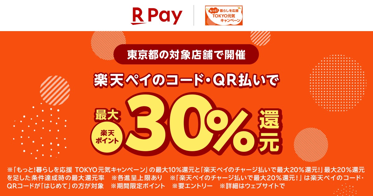 楽天ペイメント株式会社のプレスリリース(2024年12月6日 17時00分)「楽天ペイ」、東京都のキャンペーンとあわせて最大30%還元キャンペーンを実施