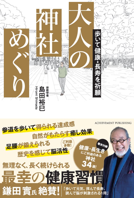 累計25万部を突破したベストセラー『一生に一度は行きたい日本の神社100選』シリーズの著者、島田裕巳氏による新書『歩いて健康・長寿を祈願 大人の神社めぐり』が発売されました。この本では、神社を巡ることで得られる健康効果やご利益、神社の建築や歴史について詳しく解説されています。健康を促進しながら神社の魅力を楽しむ方法が紹介されています.