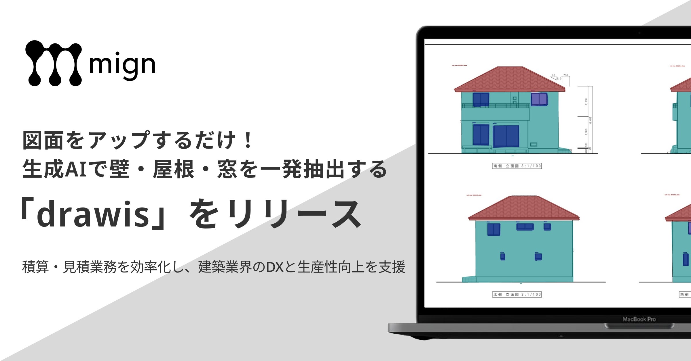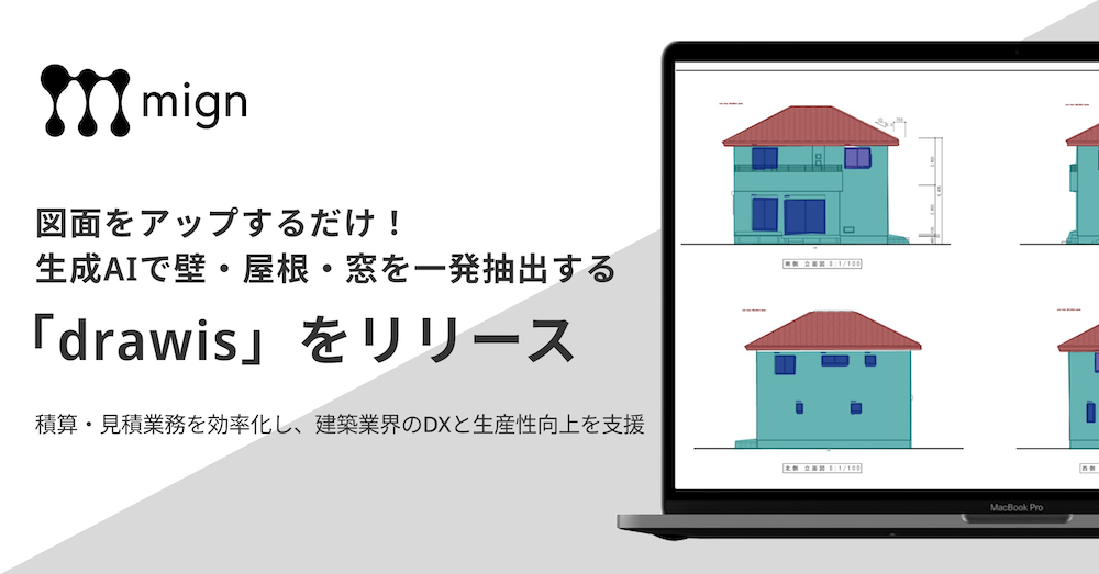 株式会社mignのプレスリリース(2025年6月4日 10時00分)図面をアップするだけ!AIが壁・屋根・窓を一発抽出する新サービス「drawis(ドロウィス)」を発表