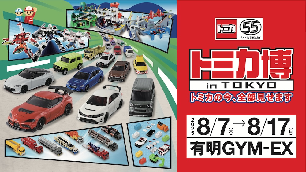 2025年8月7日〜17日、有明GYM-EXで「トミカ博 in TOKYO」が開催。テーマは「トミカの今、全部見せます!」で、55周年を記念した550台の展示や巨大ジオラマ、組立工場、ミニミニドライバー工房など体験型コンテンツが充実。小島よしおさんら人気キャラのステージも登場し、親子三世代で楽しめるイベントに。限定トミカやグッズ販売もあり、トミカファン必見の11日間!