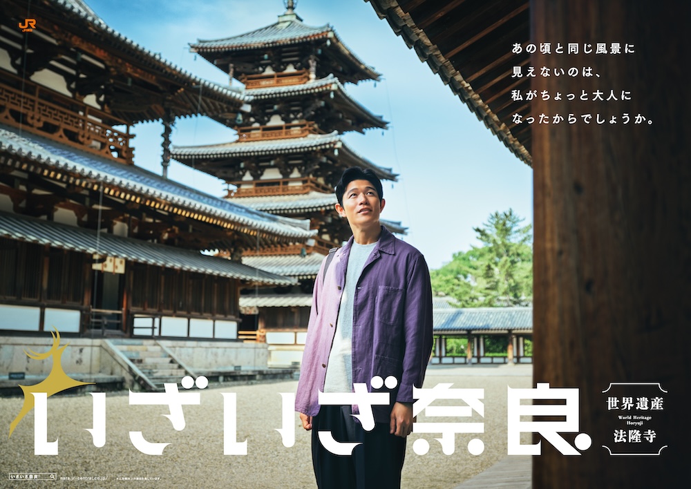 俳優・鈴木亮平さんが20数年ぶりに訪れた日本初の世界遺産・法隆寺を舞台に、JR東海の観光キャンペーン『いざいざ奈良』新CM「法隆寺編」が放送開始。1300年以上の歴史を持つ世界最古の木造建築の魅力を、大人になった今だからこそ再発見する旅が描かれています。CMでは聖徳太子ゆかりの地・斑鳩を巡り、秘仏・救世観音像や百済観音像などの文化財にも触れ、奈良の深い歴史と秋の風情を体感。現地体験プランも展開中。